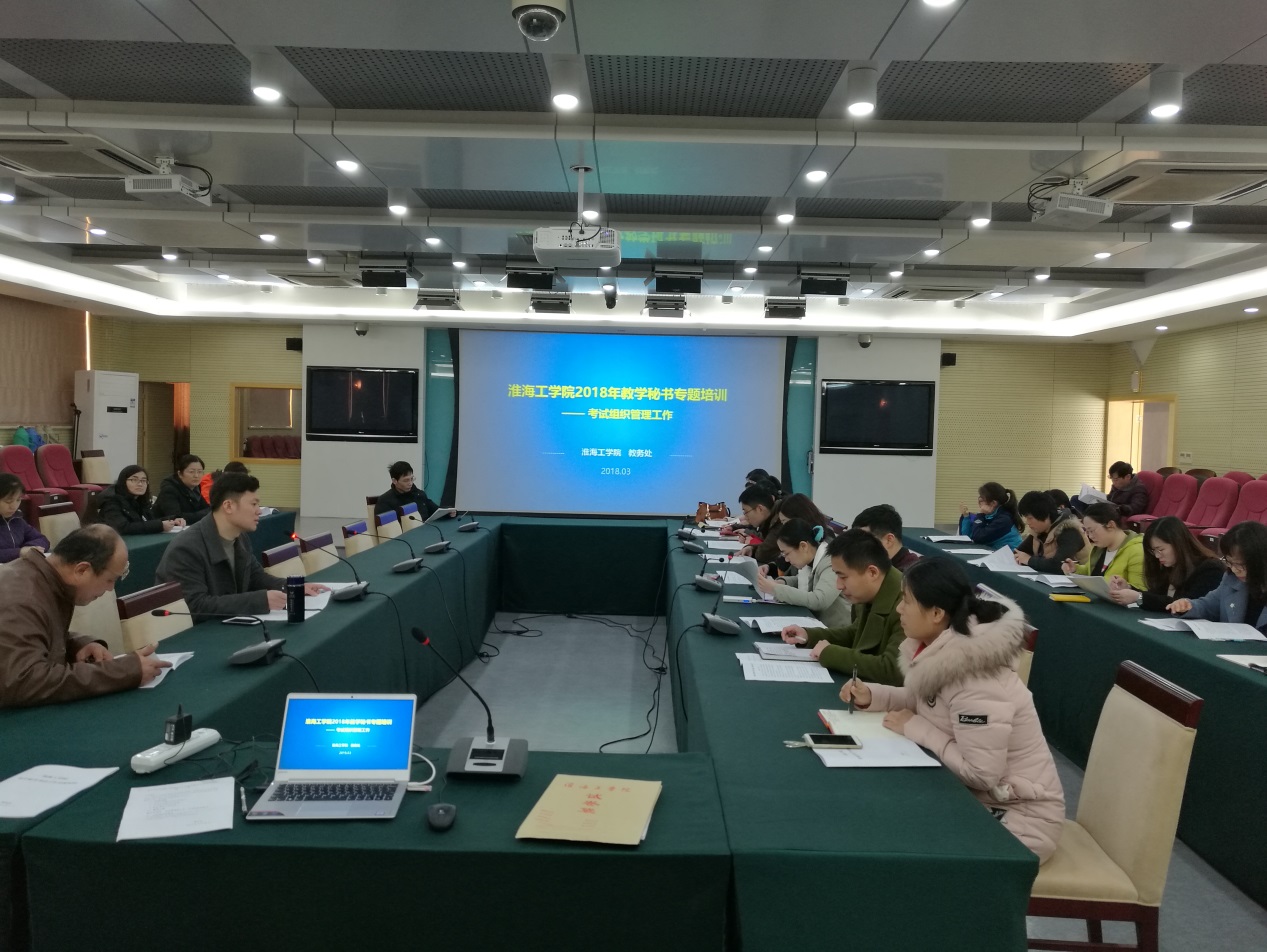 为进一步提升我校教学秘书业务素质,规范考试组织管理, 2018年3月23日,教务处在会议中心东海厅组织开展了教学秘书考务工作专题培训会。教务处副处长赵巍、教务处考试管理科全体人员、各二级学院教学秘书40余人参加了本次培训。