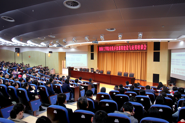 为深入推进以信息化为支撑的新一轮课程建设与课堂教学模式创新,4月7日下午,我校在会议中心黄海厅举办了在线开放课程建设与应用培训会,邀请复旦大学教师发展中心副主任、博士生导师蒋玉龙教授做了“借助在线课程,创新大学教学”的主题报告。校党委副书记、副校长宁晓明,各二级学院及相关部门负责人、精品课程负责人,以及连云港市部分兄弟院校的领导和老师,共计300余人参加了会议。会议由教务处李纪明处长主持。