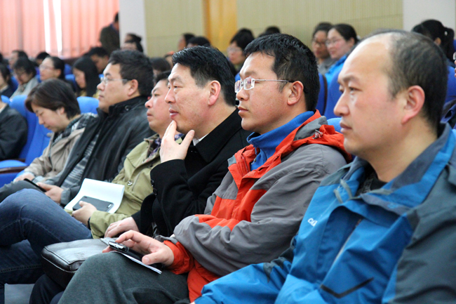 蒋玉龙教授以在线开放课程建设与大学教学模式创新为主题,从分析传统的以教师为中心的课堂教学模式存在的问题入手,结合自身运用在线开放课程实现课堂翻转教学的实践经验和体会,通过详实的数据对比,展示了引入信息化技术辅助教学后对传统教学的颠覆性影响,深入阐述了以学生为中心、以提高教学质量为核心的全新课程建设理念。蒋玉龙教授提出基于在线开放课程的任务驱动式教学模式,为改变大学教学现状,加强学生能力培养,保障教学质量提供了新途径和新契机,值得广大老师大胆探索、积极应用。会上,超星集团项目部负责人田春雷先生还就在线开放课程建设过程中有关教学知识点筛选、课程编辑以及视频后期制作等环节,详细介绍了在线开放课程的建课与制作方法。