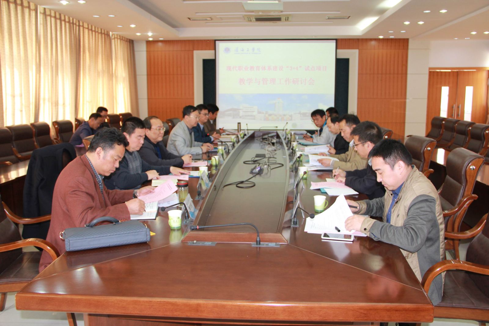 会上,校党委副书记、副校长宁晓明首先介绍了我校承担江苏省现代职业教育体系建设试点项目总体情况,对2014年与连云港中等专业学校和灌南中等专业学校 “3+4”分段培养试点项目实施双方取得的良好成效给予充分肯定,并就做好今年“3+4”试点项目的转段升学工作提出了总体要求。市教育局职教处副处长柳淼讲话,对我校在“3+4”试点项目中支持地方教育事业所做的贡献表示感谢,对下一步工作的提出了建设性意见。教务处副处长隋福利详细介绍了今年“3+4”试点项目学生转段升学考试的组织情况及预录取方案,与会领导就试点项目课程体系衔接、录取方案、培养改革等系列问题展开热烈讨论,形成了一致性意见。