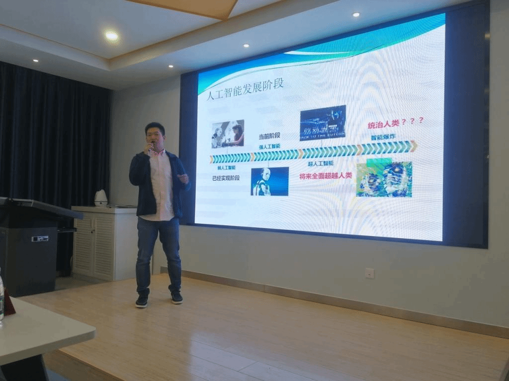 龙海生博士介绍了人工智能及移动机器人的发展历史和现状,针对基于深度学习的感知与运动规划技术涉及到的计算机视觉、深度学习、规划算法(planning algorithms)等关键技术做了详细的介绍。重点介绍了移动机器人路径规划需要解决的3个问题:如何使机器人能从初始点运动到目标点、如何设计一个算法使机器人能绕开障碍物,并且经过某些必须经过的点完成相应的作业任务、如何优化机器人运行轨迹。通过讲座,同学们对人工智能的发展历史及运动机器人的深度学习技术有了初步了解,提升了对人工智能的兴趣。