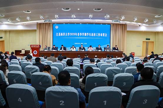 为进一步做细做实疫情防控工作,保障学生开学报到工作安全有序进行,4月10日下午,我校在会议中心黄海厅召开2020年春季学期学生返校报到工作布置会。校长宁晓明,副校长李梅英、严云洋出席会议,会议由副校长金芙蓉主持。教务处、后勤管理处、分校区管委会负责人,党委学生工作部、党委研究生工作部、团委、保卫处全体人员,各学院党委书记、副书记,全体辅导员参加了本次会议。