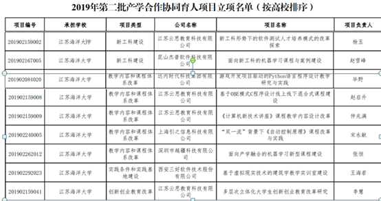 最近,教育部发布《教育部高等教育司关于公布2019年第二批产学合作协同育人项目立项名单的通知》(教高司函[2020] 6号),我校“新工科形势下的软件测试人才培养模式的改革探索”等9个项目获批2019年度第二批产学合作协同育人项目。