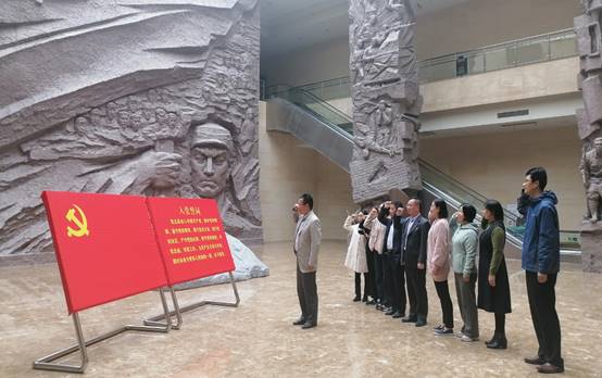 为不断增强党支部的凝聚力和战斗力,更好地发挥党员先锋模范作用,10月28日下午,机关第七党支部赴连云港市革命纪念馆开展“缅怀革命先烈 弘扬革命精神”主题党日活动,副校长严云洋参加此次活动。活动分两个阶段进行,首先,在革命先烈雕像前,全体党员面向党旗,在支部书记乔斌的带领下,庄严宣誓,重温入党誓词。随后,全体党员满怀着对革命志士的崇高敬意和深切缅怀,认真倾听讲解员的生动讲述,观看各展厅的文字介绍、图片及珍贵实物,回顾革命先烈们在血雨腥风的岁月里舍生取义,为中华民族的独立和伟大复兴立下的不朽功勋。通过此次主题党日活动,进一步激发了全体党员积极进取和勇于担当的爱国情怀。党员们纷纷表示,在今后的工作和生活中,要立足本职工作,不忘初心,牢记使命,时刻不忘党员身份,切实增强党性修养,立足本岗,扎实工作,为全校师生提供更优质服务。