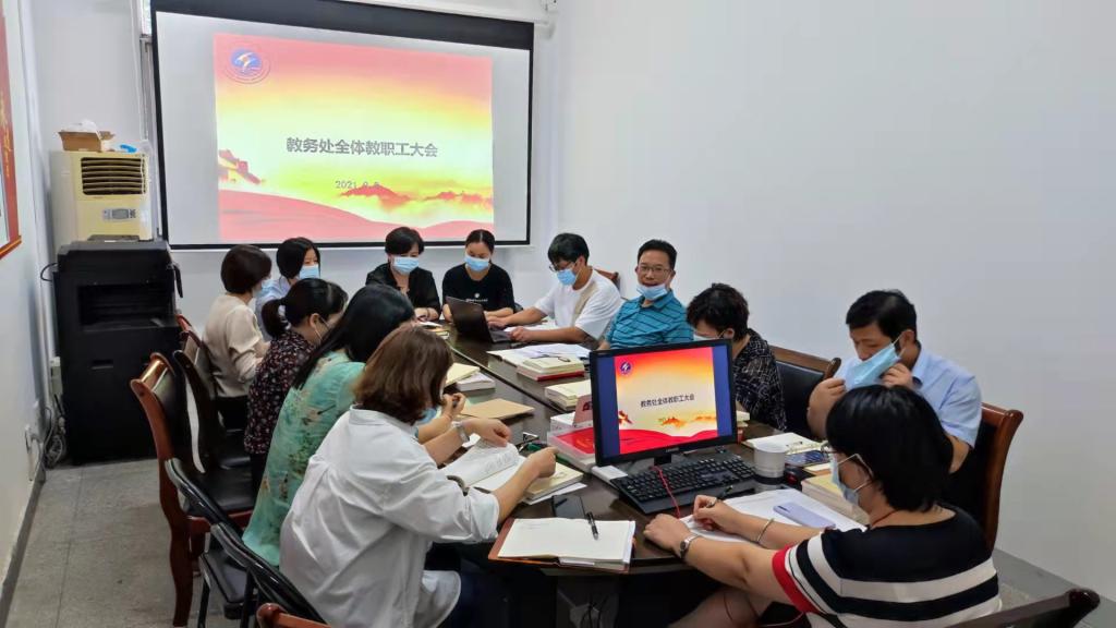 会上,各科室对暑期工作分别做总结。教务科针对疫情影响,对本学期课表优化调整,组织753门课程1385个教学班的线上教学方案制定,电子版教材搜集汇总及教材选用,教材征订追踪与回告,88本教材的重新选用与征订,提前发放了教师用书等方面进行了总结。