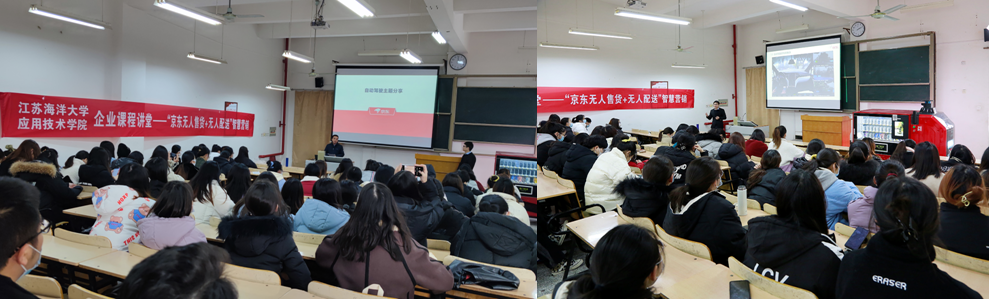 12月31日,京东无人售货车开进应用技术学院课堂,承担京东智能配送科技支持的长沙行深智能科技公司运营副总监邓菘作为企业导师为学生讲授了一堂“智慧新零售”的实景训练课程。