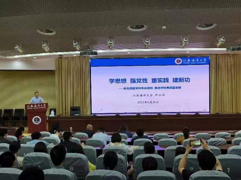 6月20日上午,在学术会议中心黄海厅,副校长严云洋上了题为“学思想 强党性 重实践 建新功-优化调整学科专业结构,推进学校高质量发展”的专题党课。教务处、教学质量管理处(教师教学发展中心)、国有资产与实验室管理处、工程训练中心(创新创业学院)、学术期刊社全体中层干部和全体党员,及计算机工程学院、体育学院党政领导班子成员,各学院分管教学和实验室建设院长,软件工程系党支部全体党员参加了党课。