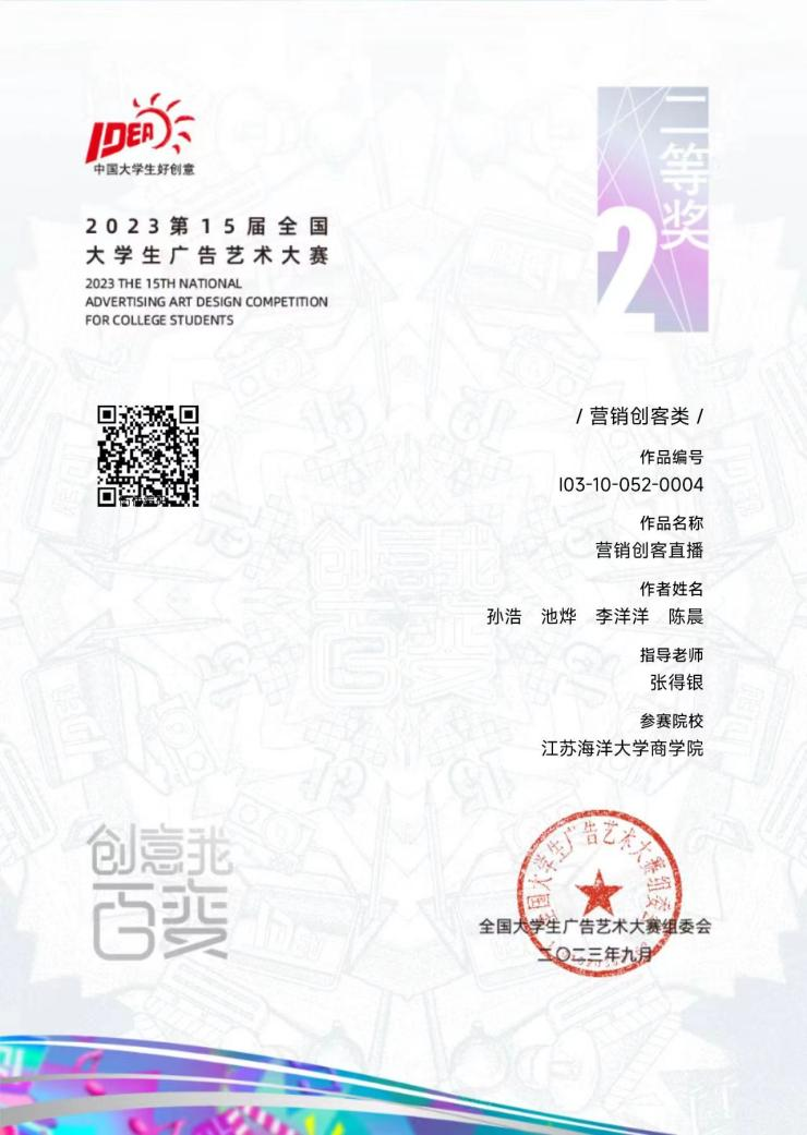 2023年由文法学院组织,艺术设计学院和商学院组队参赛,我校获国家级二等奖1项、三等奖3项、优秀奖6项。