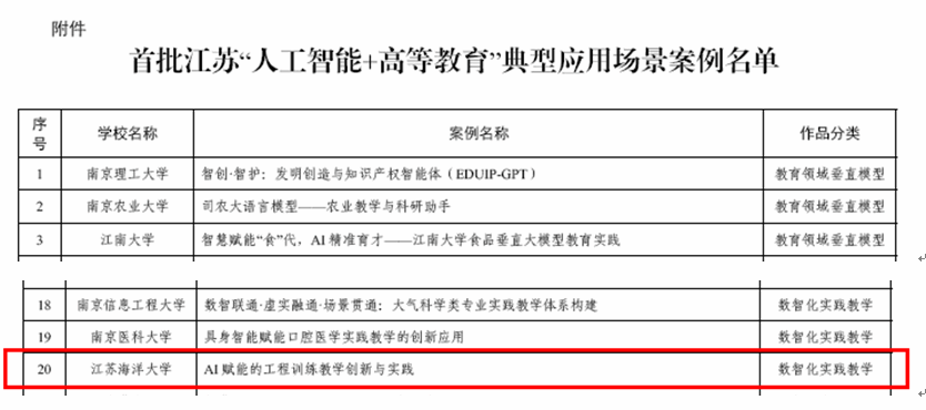 展望未来,学校将以此次入选为契机,依托省级“AI+课程及案例”平台,积极参与江苏“AI+教育”新生态建设,加强与兄弟高校的交流合作与经验互鉴,持续深化人工智能在工程教育领域的创新应用,全面推动人工智能赋能教育改革创新,不断提升人才自主培养质量。